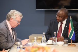 William Bird, director of Moxii Africa, and Makhudu Sefara, chairperson of SANEF, led both delegations as they handed over the Johannesburg-Declaration. Ramaphosa was joined by Ronald Lamola, Minister of International Relations and Cooperation, and Enoch Godongwana, Minister of Finance, respectively.