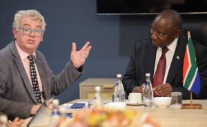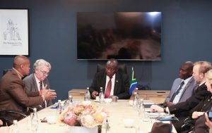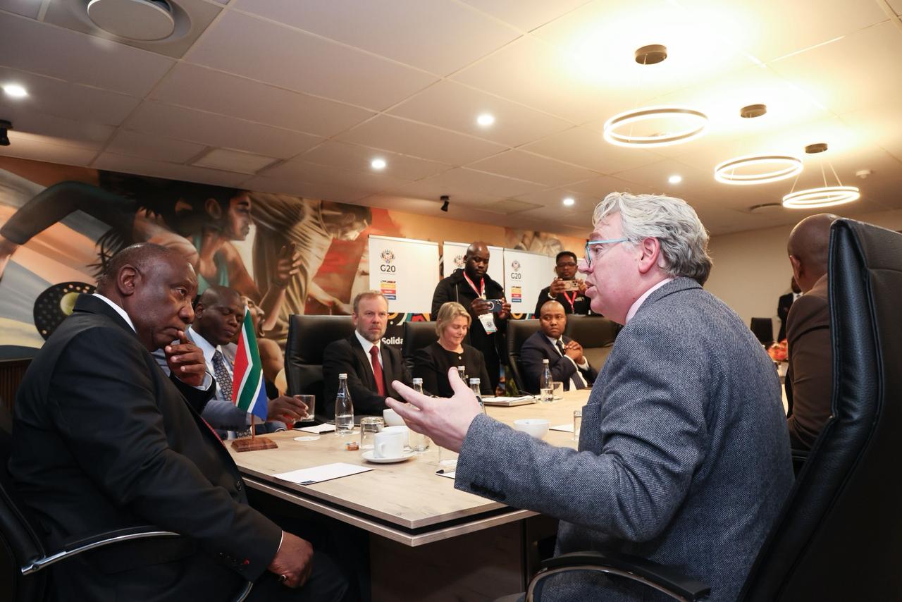 William Bird, director of Moxii Africa, and Makhudu Sefara, chairperson of SANEF, led both delegations as they handed over the Johannesburg-Declaration. Ramaphosa was joined by Ronald Lamola, Minister of International Relations and Cooperation, and Enoch Godongwana, Minister of Finance, respectively.