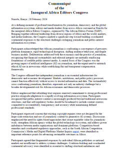Read the official Communiqué of the Inaugural Africa Editors Congress below